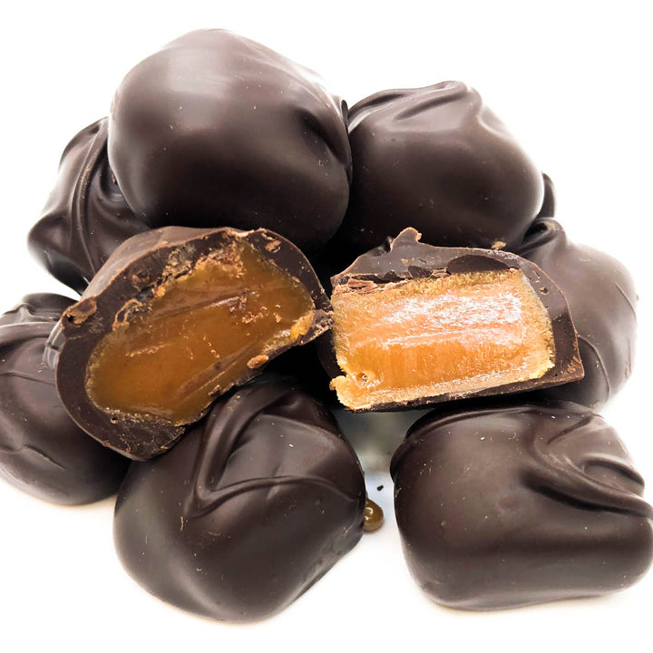 The slight bitterness of dark chocolate cuts through caramel's intense sweetness.